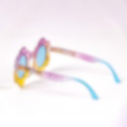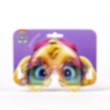 Premium solbriller til barn med vakre detaljer og motiver fra Paw Patrol Skye. På bøylene rundt de tonede glassene finnes seriens mest kjente karakterer.