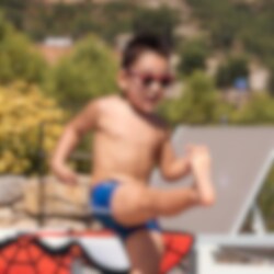 Premium solbriller til barn med vakre detaljer fra alles favoritt Spiderman. På buene rundt de vakkert blåtonede glassene finner du Spiderman på hver side.