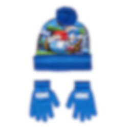 Et must for alle små Sonic-fans! Settet består av en blå lue med dusk og fargerikt trykk av Sonic og vennene hans samt matchende hansker med Sonic-logo.