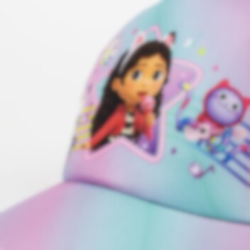Denne glitrende barnecapsen med motiv fra Gabby’s Dollhouse har et fargesprakende trykk med Gabby og kattevennene hennes på en skimrende pastellfarget bakgrunn. Et lekent og fargerikt tilbehør som raskt blir en favoritt blant små fans av den populære serien.