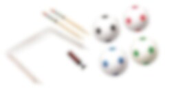 Fotballkrokket, som er en morsom kombinasjon av fotball og krokket. I stedet for å leke med baller sparker du fotball gjennom buene ute på banen. Kan spilles mellom 2 til 4 personer og er fra 3 år.