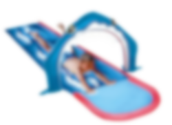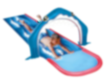 Morsom vannsklie i hai-tema som vil være perfekt under sommerens varmeste dager. Sklien er 3 meter lang og har innebygget vannsprøyte i buen. Fra 3 år med voksentilsyn.