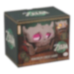 Kul lampe som forestiller en Bokoblin-kiste fra The Legend of Zelda: Breath of the Wild, komplett med de ikoniske lydeffektene når den åpnes. Lampen lyser i to farger, lilla og gul, og er 14,4 cm bred. Den drives av 3 AAA-batterier (ikke inkludert)