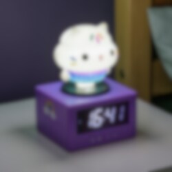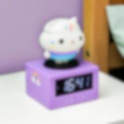 Start dagen på best mulig måte med denne sjarmerende Gabby's Dollhouse vekkerklokken! Den digitale klokken er ca. 16 cm høy og har en opplyst Cakey Cat på toppen. Klokken har en musikalsk alarm som vekker hver morgen, og du kan enkelt aktivere snoozefunksjonen ved å trykke på hodet til Cakey Cat. Når du trykker på hodet, tennes også nattlyset, perfekt for å spre et mykt skinn på barnerommet. En både morsom og praktisk detalj for alle som elsker Gabby's Dollhouse.