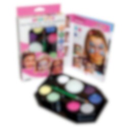 Set med mange deler som du kan bruke for at lage kreativa ansiktsmalinger med. Forpakningen inneholder 5 stk. 2 ml. vanlige ansiktsfarger, 1 stk. 2 ml metallic ansiktsfarge, 2 stk. 2 ml sparkle ansiktsfarge, 1 stk. sminkesvamp 1 st pensel og en enkel step-by-step instruksjon. Snazaroo ansiktsfarger er av høy kvalitet.