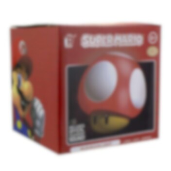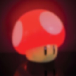 Morsom lampe som forestiller den røde soppen fra Super Mario. Ha denne i rommet for å skape en koselig stemning. Når man trykker på lampen, så kommer den klassiske lydeffekten fra soppen, slik som man kjenner det fra spillet. Lampen trener 2 stk. AAA-batterier (medfølger ikke).