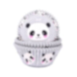 50 stk. muffinsformer i en grå farge med motiv av pandaer. Bruk disse for å lage søte muffins og cupcakes som du kan servere til fest med pandatema. Formene er ca. 5 cm i bunn.