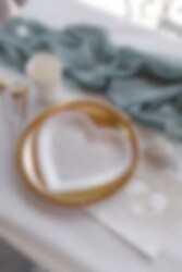 10 stk. hjerteformede tallerkener med grønne og gullfolierte prikker og gullfolierte kanter. Supersøte å dekke til en babyshower eller en dåp. Tallerkenene er ca 22,5 x 20 cm store.