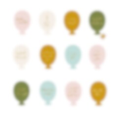 Fine fargerike milepælskort formet som ballonger. Ved hjelp av disse kan babyens utvikling fotograferes og deles med venner og familie. Perfekt å gi til den nybakte moren på babyshoweren hennes.
