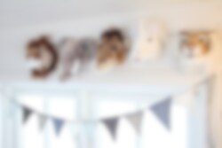Søtt lite tigerhode til å henge på veggen på barnerommet eller i stua. Heng på veggen via en påsydd hempe. Mål: 12 x 14 x 11 cm.