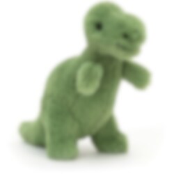 En søt og myk liten tyrannosaurus som kan stå. Denne gressgrønne lille dinosauren har glatt, luftig pels, to korte ben og to små armer, en lang avsmalnende hale, et lite smil og våkne øyne som holder øye med neste smakfulle snack. En kosete liten dino som kan følge deg nesten hvor som helst. Laget av polyester og håndvaskes om nødvendig.