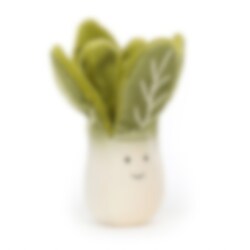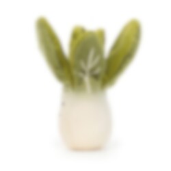 En morsom og kosete pak choi med nydelige lysegrønne blader som blir til kremhvite stilker. Den er myk og elastisk med en lubben bunn, en vakker bladkrone og et lykkelig smil. Denne søte skapningen er både et morsomt leketøy og en flott maskot på kjøkkenet. Laget av polyester og kan håndvaskes og flat- eller hengetørkes om nødvendig.