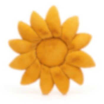 Et morsomt og vakkert kosedyr eller pute i form av blomsten solsikke. Ved hjelp av mykt stoff og polstring har de laget en fantastisk blomst med gule kronblad rundt et stort brunt senter med et smilefjes på. Laget av polyester og håndvaskes om nødvendig.