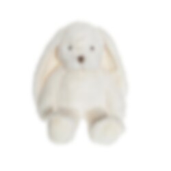 Søt kosedyrskanin med hvit silkeaktig pels, en brun garnnese og mørkebrune broderte øyne. Kaninen er 30 cm høy og kan vaskes på 40 grader. Godkjent og CE-merket i henhold til EN71.