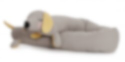 Sjarmerende dachshund med broderte detaljer og vakker grå farge med gule detaljer. Kan brukes som en annerledes beskyttelse til barnesengen eller som en morsom pute for de eldre barna. Laget av økologisk bomull og trukket med polyester. (Oeko-Tex Standard 100). Vask i 30° skånsom vask og heng tørr. Størrelse: ca. 195 x 20 x 15 cm.