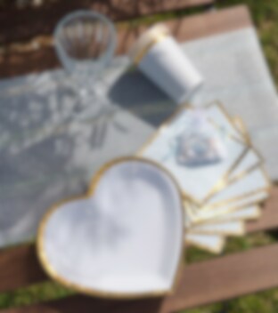 Tallerkener - Hjerteformet i blått og gull 10 stk.