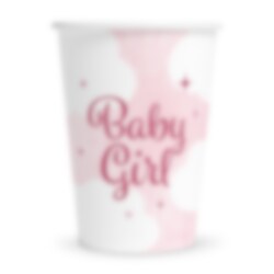 Dekk opp til en fin babyfest med disse dekorative pappkoppene i rosa med teksten Baby Girl. De blir en fin detalj på festbordet og passer perfekt til baby shower, dåp og velkomstfeiring.