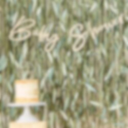 Girlang i tre-materiale med teksten "Baby Shower" fra det miljøvennlige temaet Botanical Baby. En vakker dekorasjon å ha med til enhver babyshower. Pakken inneholder i tillegg til girlangen, et 2 meter langt snøre i garn.