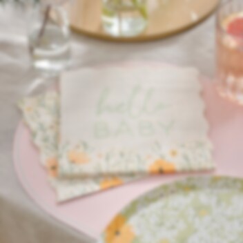 16 stk. vakre og sommerlige servietter som er et perfekt komplement når du dekker til en babyshower. Serviettene gir bordet ditt en vakker blomstrende touch. Serviettene har 2 lager og er utfoldet 30 x 30 cm store.
