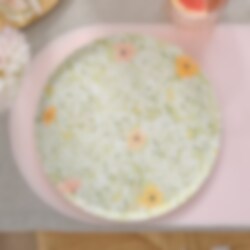 8 stk. vakre papptallerkener med blomstermønster fra kolleksjonen Floral Baby. Et oppkvikkende tema som går i varme og sommerlige fargetoner. Disse tallerkenene er fantastisk søte å dekke med til både babyshowers eller dåp. Tallerkenene er 25 cm i diameter.