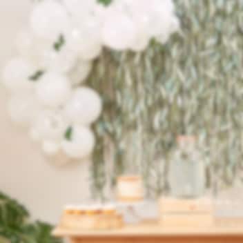 Ballongbue i hvite farger med 6 stk. eukalyptus blad som du selv kan bygge sammen. En vakker dekorasjon som passer til dåp eller babyshower. Pakken inneholder 45 stk. ballonger og engelske instruksjoner på baksiden av pakken på hvordan du setter den sammen. Ballongbuen blir ca. 4 meter stor sammenbygd.
