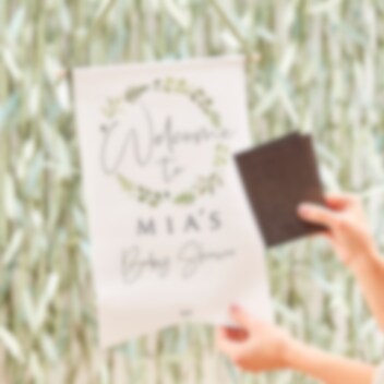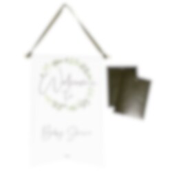 Imponerende velkomstskilt som du selv kan designe for å tilpasse den til din babyshower. En fin sak å ha fremme ved inngangen når gjestene kommer. Skiltet er ca. 40 cm stort og pakken inkluderer også 10 ark med svarte bostavklistremerker og et grønt bånd for å henge opp skiltet med.