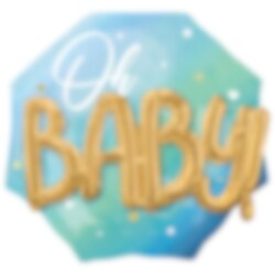 Folieballong i grønn og blå farger med 3D motiv av teksten "Oh Baby" i gull og hvitt. En nydelig dekorasjon å ha med til babyshoweren. Ballongen er ca. 71 x 76 cm stor oppblåst og kan blåses opp med luft eller helium.