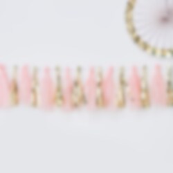 Stilig girland med dusker i rosa og gull. En søt dekorasjon til Babyshowerfesten din. Girlanden har 16 stk. dusker og er ca 2 meter lang.