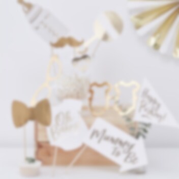 10 stk. photoprops i hvit og fullfolie med motiv av ulike babyrelaterte ting. Bruk disse for å ta fine og minnerike bilder under Babyshoweren.