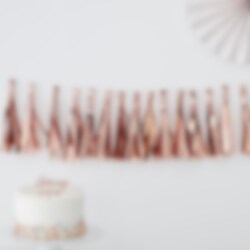 Dekorativ girlande med flere vakre dusker i roségull folie. Girlanden settes enkelt sammen og pakken inkluderer 15 dusker av folie og et snøre på to meter.