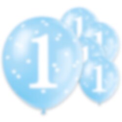 5 stk. lyseblå lateksballonger med motiv av tallet 1 og ruter i hvitt. Perfekte å dekorere rommet med til 1-årsfesten. Ballongene blir ca. 30 cm i diameter oppblåste og blåses opp med luft eller helium.