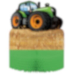 Kul bordsdekorasjon i honeycomb med festligt motiv i traktortema. Dekorasjonen er ca 23 x 30 cm stor.