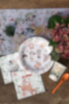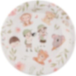 10 stk. papptallerkener med motiver av søte små safaridyr, blader og små oppdagelsesreisende. Passer fint med tilhørende tilbehør fra samme safari-tema. Tallerkenene er ca. 22,5 cm store.