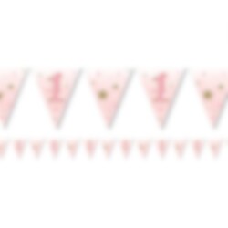 Vakker flaggirlander av papir med morsomt 1-års motiv. En koselig dekorasjon til 1-årsbursdagen. Flaggirlanderen er ca. 3,7 m lang.