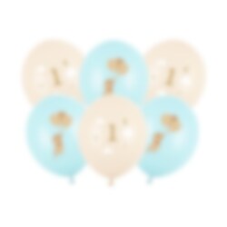 Feir ettårsdagen med disse søte ballongene i blå, hvite og beige toner med vakre trykk og sjarmerende musedekorasjoner. Perfekte for å skape en søt og helhetlig festdekorasjon til 1-årsbursdagen!