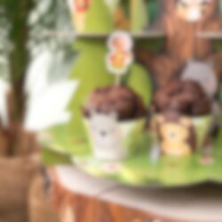 Skap en magisk følelse med dette fantastiske muffinsstativet som forestiller et tre i skogen, dekorert med sjarmerende små skogsdyr både på for- og baksiden. Det passer perfekt til blant annet en bursdag med skogsdyrtema og er laget av stabil papp med en størrelse på 40 x 32 cm.