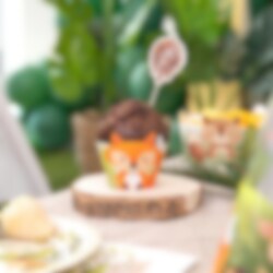 6 stk. cupcake wrappers laget av papp med motiver av søte små skogsdyr, perfekte som dekorasjon til muffinsene dine. Bredden er 7,5 cm og høyden ca 6 cm.