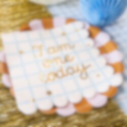 12 stk. fine servietter med teksten "I am one today" i gullfolie, perfekte til 1-årsbursdagen med teddybjørntema. Med sine lekne farger blir de et søtt og morsomt innslag på bordet. Serviettene har 3 lag er 33 x 33 cm store når de er utfoldet.
