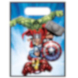 6 stk. godteposer i plast med et actionfylt motiv av Hulken, Thor, Captain America og Iron Man. Perfekte til å fylle med godis og små overraskelser som barna kan ta med seg hjem etter bursdagen med Avengers-tema.