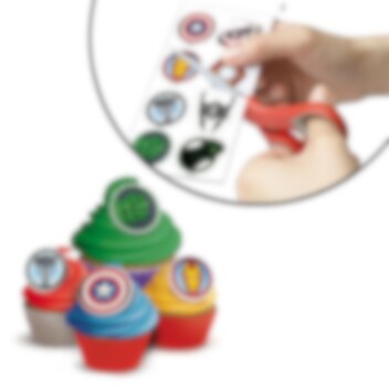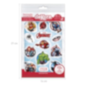 Pakke med 13 stk. sukkerfrie dekorasjoner med flotte motiver fra Marvels Avengers. Dekorer kaken eller muffins med disse når det gjøres klar til fest. Du finner innholdsfortegnelsen under.