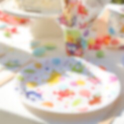 8 stk. fine papptallerkener med morsomme motiver av karakterene fra Babblarna. Disse tallerkenene er 23 cm i diameter.
