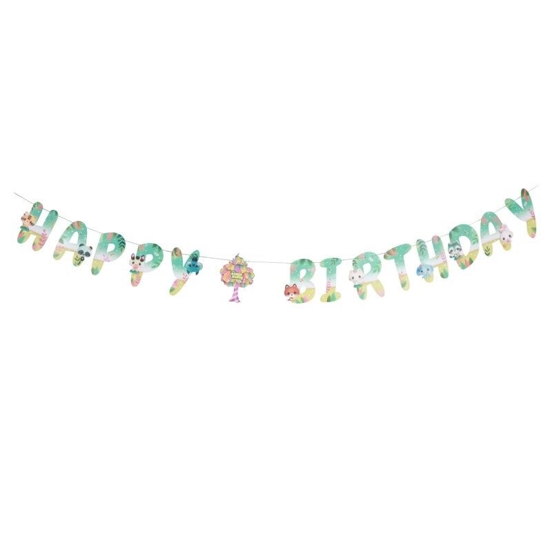 Klar for bursdagsfeiring? Da er denne fargerike Bangoberry-girlanderen et absolutt høydepunkt! Med glade farger, søte figurer og teksten "Happy Birthday" setter den stemningen på barnebursdagen. Girlanderen er 2 meter lang og passer perfekt over dessertbordet, på veggen eller i døråpningen.