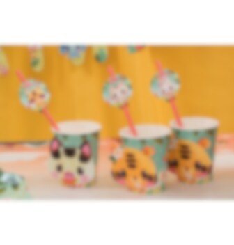 Gjør barnebursdagen enda mer fargerik med disse flotte pappkoppene fra Bangoberry. De glade dyrevennene fra øya Bingo Bango pryder hver kopp og gjør drikken litt ekstra festlig. Det lekne designet med lett 3D-effekt får figurene til å våkne til liv og skaper en fantasifull stemning på bursdagsbordet.