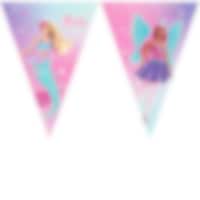 Sjarmerende flaggirlander av papir med motiv av Barbie som bærer forskjellige antrekk. Stilig dekorasjon å henge opp når det er på tide å pynte til bursdagen. Girlanderen er ca 2,3 meter lang og hver vimpel er ca 24,5 cm høy.