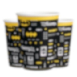 8 pappkopper med kule Batman-motiver. Koppene er ca 10 cm høye og rommer ca 250 ml.
