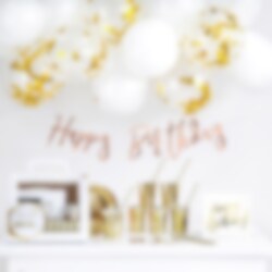 - 1 elegant "Happy Birthday" banner i gullfolie