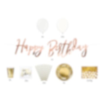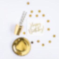 Skap en uforglemmelig bursdagsfeiring med vårt eksklusive gullfolierte festpakke! Dette stilfulle settet gir deg alt du trenger for å sette et glamorøst preg på festen din, og sørger for en enkel og stressfri forberedelse.
