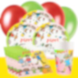 Denne komplette festpakke med fargerike Pippi Langstrømpe originaltilbehør inkluderer tallerkener (23 cm), pappkopper (250 ml) og servietter (33 x 33 cm) for 8 eller 16 personer. I tillegg medfølger 10 stk. røde ballonger og 10 stk. grønne ballonger og en gul plastduk (137 x 274 cm).