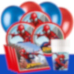 Denne komplette festpakke med kule tilbehør fra Spiderman inkluderer tallerkener (23 cm), pappkopper (200 ml) og servietter (33 x 33 cm) for 8, 16 eller 24 personer. I tillegg medfølger 10 stk. røde ballonger og 10 stk. mørkeblå ballonger og en mørkeblå plastduk (137 x 274 cm). Pakken for 24 gjester inkluderer 2 stk. duker.