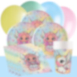 Denne komplette festpakken i søtt enhjørningstema inkluderer tallerkener (22,5 cm), pappkopper (270 ml) og servietter (33 x 33 cm) til 10 eller 20 personer. Utover dette inneholder pakken også 10 stk. pastellfargede ballonger og en lyseblå plastduk (137 x 274 cm).